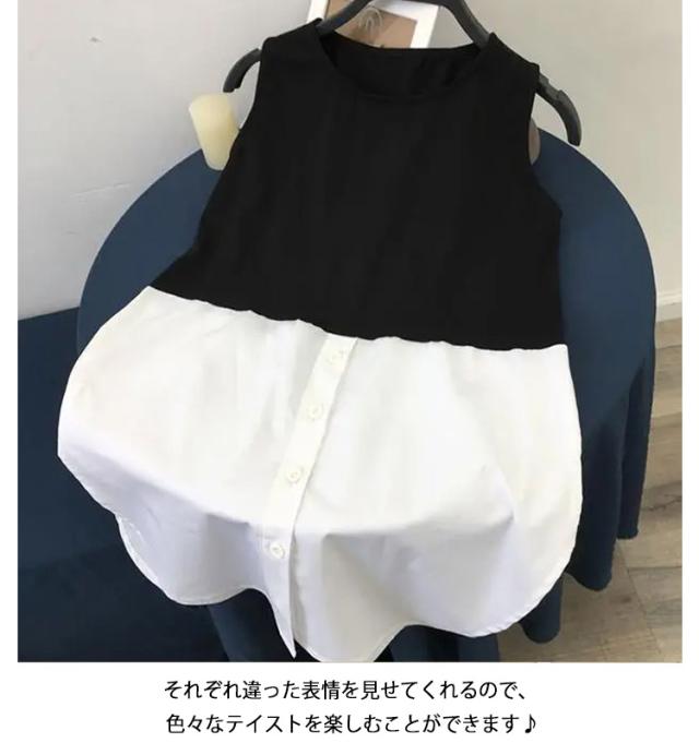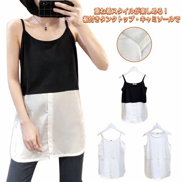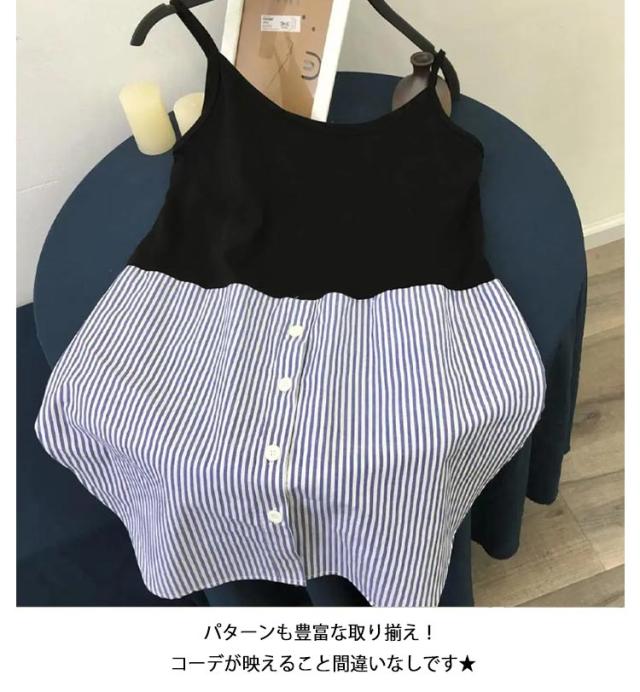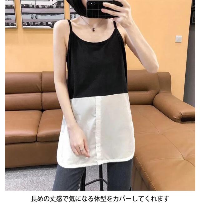 レイヤード タンクトップ レディース ロング丈 キャミソール 重ね着 インナー ロングタンク ストライプ シャツ ラウンドヘム キャミタンク 体型カバー お洒落 付け裾 夏新作 送料無料
