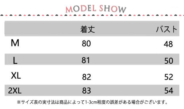 | サイズについての説明 | サイズ 着丈 バスト ※サイズ表の実寸法は商品によって1-3cm程度の誤差がある場合がございます。 |