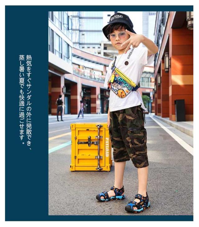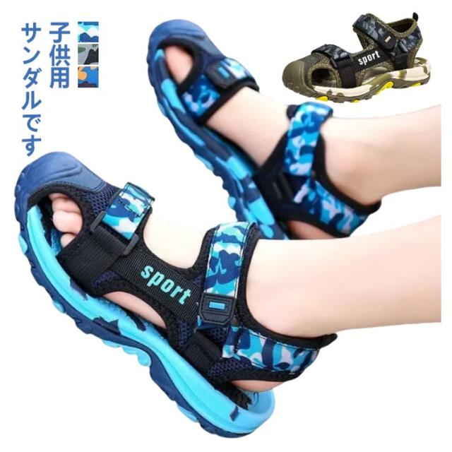 男の子 サンダル つま先ある キッズ スポーツサンダル 大きいサイズ 女の子 ビーチサンダル 歩きやすい コンフォート 軽量 サマーシューズ シューズ ジュニア キッズ アウトドア 屈曲性 マジックテープ付き 痛くない 履きやすい 通学 可愛い 小学生 中学生