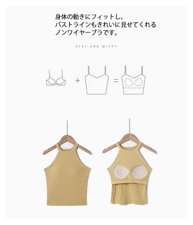 | ・レディース用カップ付きキャミソール ・ヨガやウォーキング、リラックスタイムもOK! ・身体の動きにフィットし、バストラインもきれいに見せてくれるノンワイヤーブラです。 ・デイリーからスポーツシーンまで幅広く使えるデザイン。 | |