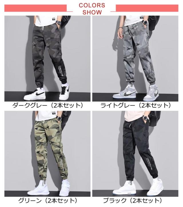 2本セット!アイスシルク ロングパンツ 迷彩 ストレッチパンツ カモフラ柄 ゴルフパンツ 夏 カジュアルパンツ ズボン 細身 パンツ アイスシルク メンズ 夏 スキニーパンツ 薄手 接触冷感 速乾 薄手 ゴルフウェア ストレッチ 軽量 アイスシルクパンツ