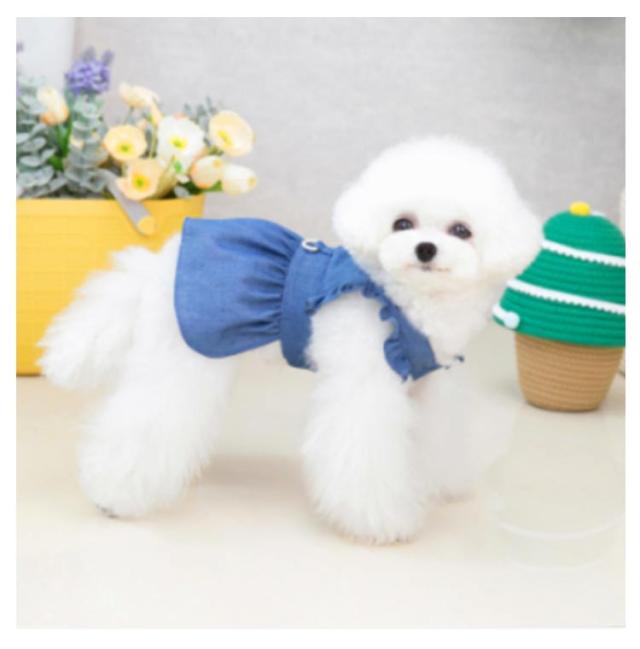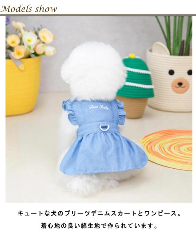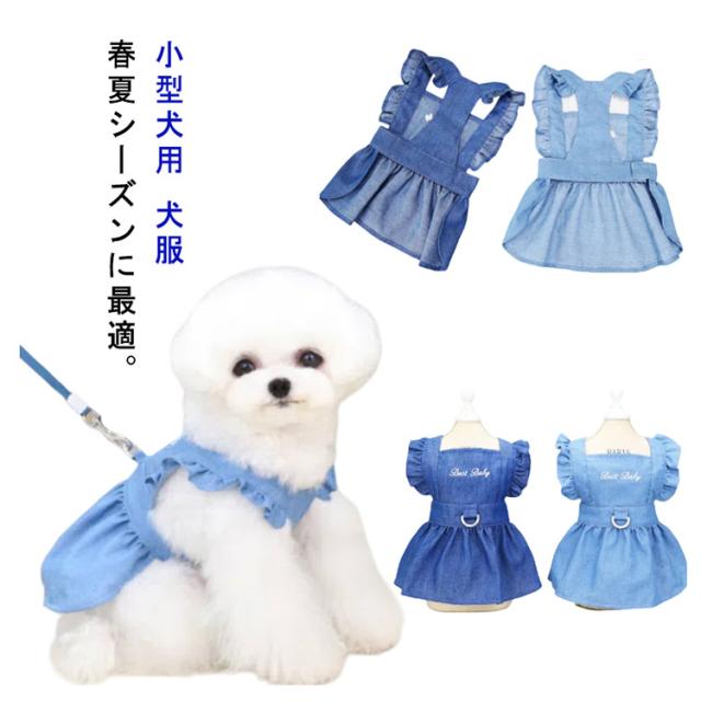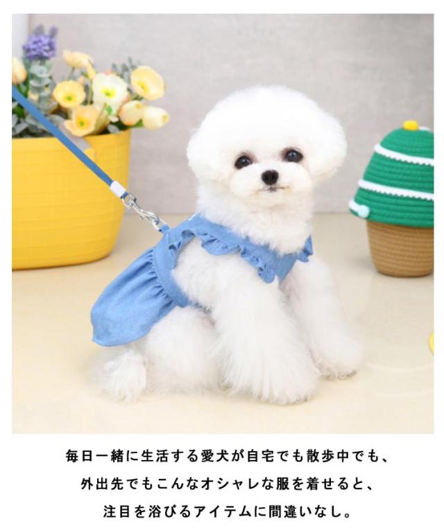 春夏 小型犬用 犬服 デニムハーネス ワンピース ドッグウエア ペット服 猫 お出かけ 薄手 涼しい 可愛い フリル お散歩 犬 ペット用スカート おしゃれ かわいい インスタ映え