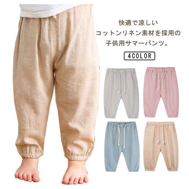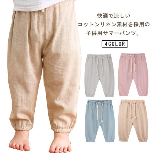 送料無料リネンパンツ 子供 ジョガーパンツ 春夏 薄手 麻 男の子 女の子 サルエルパンツ 涼しい キッズ サマーパンツ ゆったり 無地 快適 リネン カジュアルパンツ 長ズボン ロングパンツ