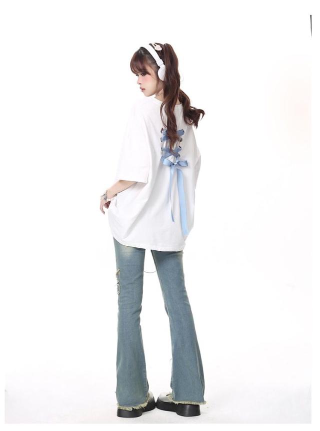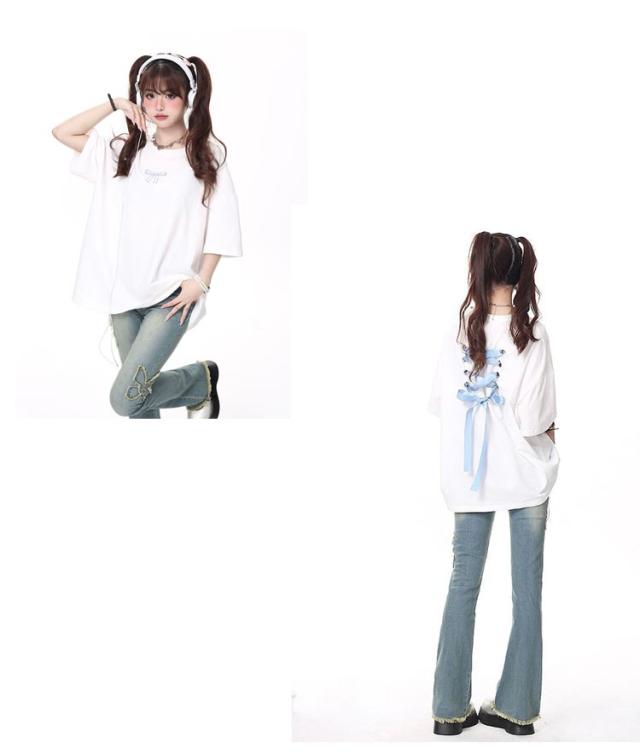 | 全3色×6サイズ!コーディネートしやすいリボンデザイン半袖Tシャツ。 柔らかな素材で肌触り優しいです。 全体的にゆったりとしたシルエットで、動きやすくストレスフリー着用感。 女性らしいアイテムに合わせれば上品な着こなしが叶います。 カジュアルにも、幅広いコーディネートが楽しめる可愛いアイテムです。 | |