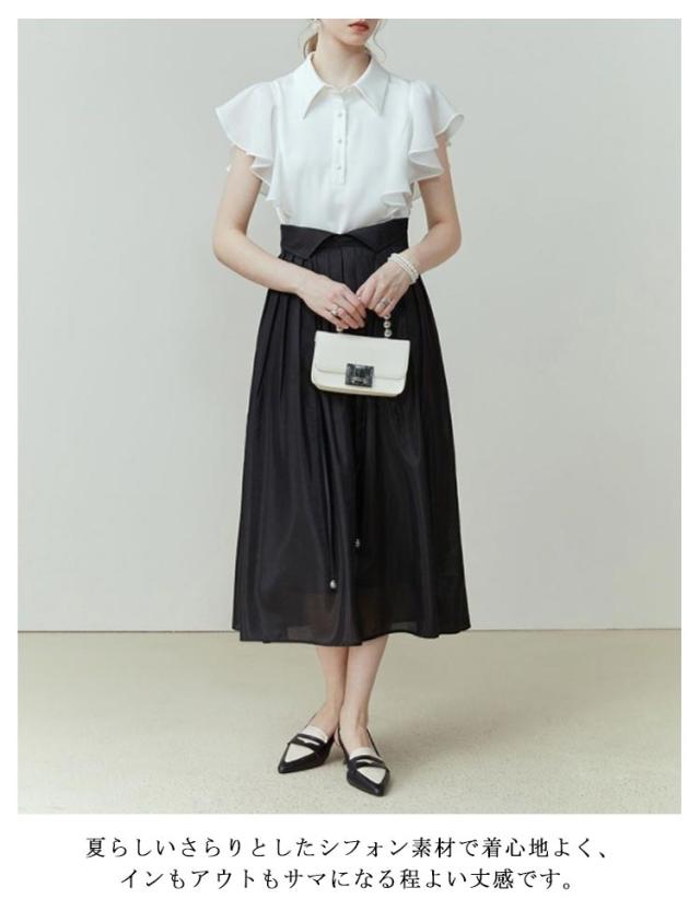 フレア袖 ブラウス シャツ トップス レディース 半袖 フリル ふんわり シフォンブラウス とろみ素材 スーツ インナー シャツブラウス フォーマル 無地 春 夏 送料無料 シンプル フェミニン きれいめ オフィスカジュアル