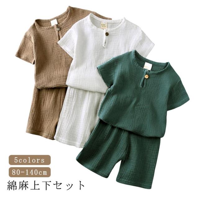 キッズ 上下セット 子供服 半袖Tシャツ ハーフパンツ 綿麻 ルームウェア ベビー ジュニア 部屋着 パジャマ 普段着 女の子 男の子 コットン ユニセックス セットアップ 無地 幼児 カジュアル 80 90 100 110 120 130 140cm 夏