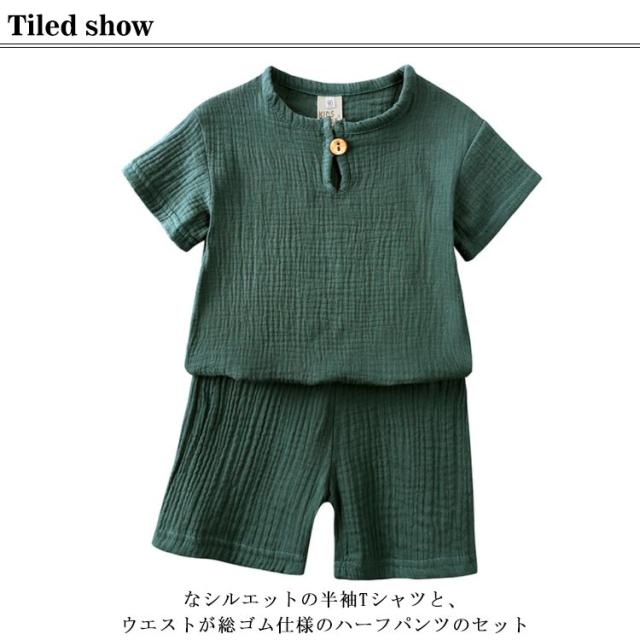 | 【綿麻上下セット】【80-140cm】【5colors】 なシルエットの半袖Tシャツと、ウエストが総ゴム仕様のハーフパンツのセット 肌触り柔らかで通気性抜群な綿素材で作られており、赤ちゃんの柔らかい肌を優しく守ります。 しっかりした生地と丁寧な縫製で耐久性が優れ、長持ちすることができます。 シンプルなデザインで、服の合わせに悩まず、この一着でおしゃれ感満々!お子様の可愛さをアップ。 柔らかくて快適なラウンドネックはタイト感がありません。 ウエストゴムで着心地楽ちんなセットアップ。 おうち時間、パジャマだけでなくお出かけにもオススメです。 | |