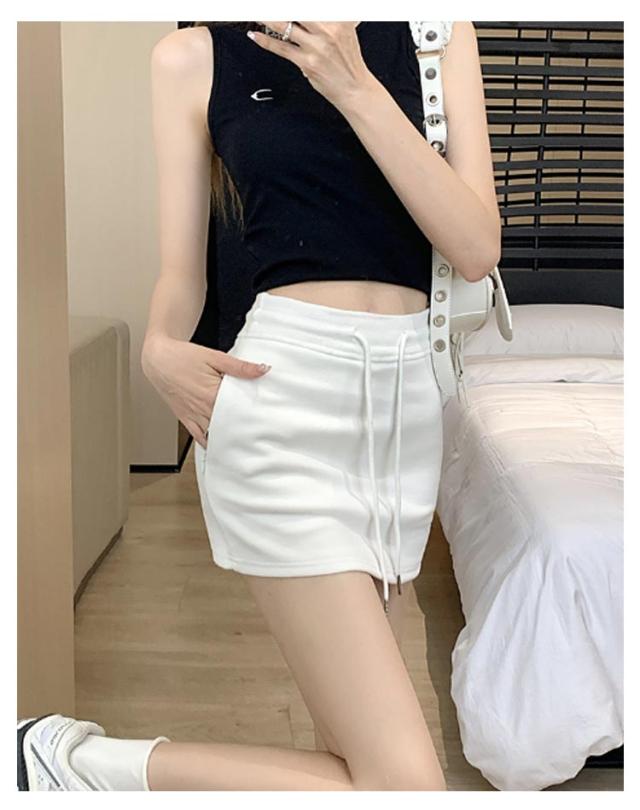 | 全4色、シンプルなデザインのスウェットスカート ハイウエスト&紐デザインで腰をほっそりスタイルアップ。。 丈は短いけれどショートパンツの裏地付きなので安心して履けるデザインです。スタイルアップを叶えます。 スポーツウェアからデイリーカジュアルな場所まで活躍してくれるスカートです。 | |