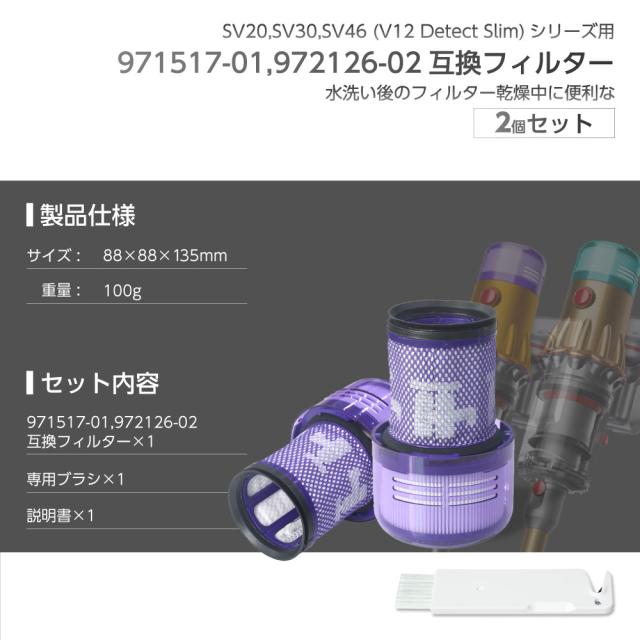 商品名:ダイソン掃除機 SV20,SV30,SV46 (V12 Detect Slim) シリーズ専用の互換フィルター 971517-01,972126-02 互換