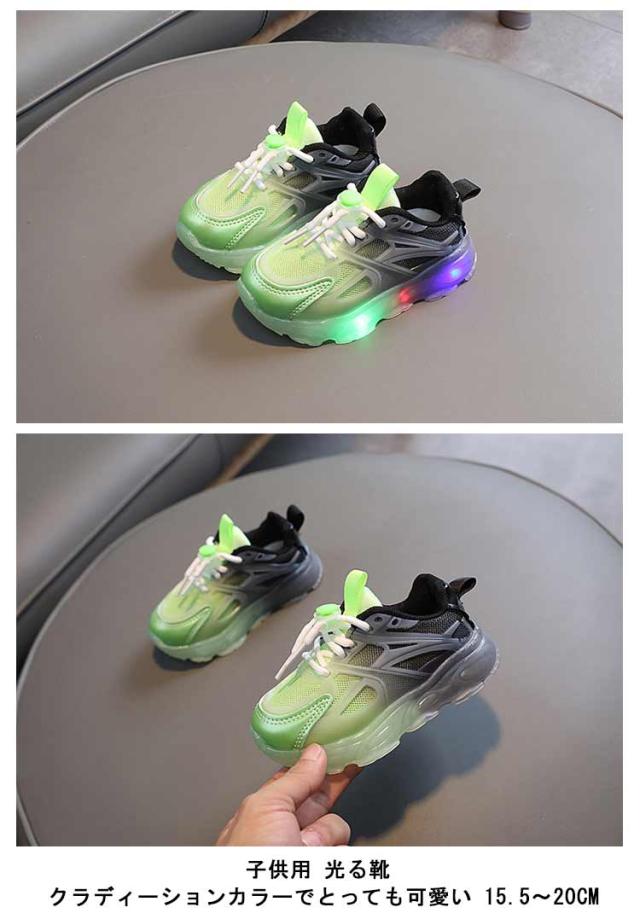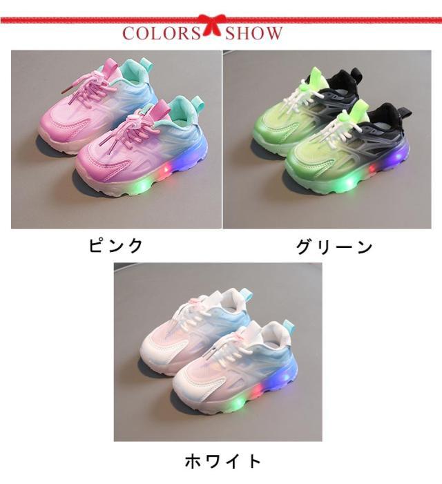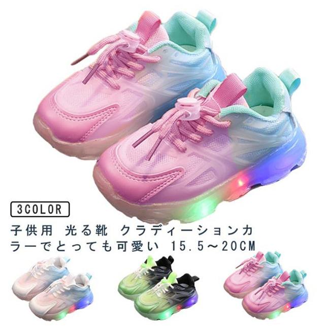 光る靴 光るシューズ 子供用 光るスニーカー ひかるシューズ キッズ用 ピカピカ ソールライト LEDライト 子供靴 女の子 男の子 お洒落 クラディーション 軽量 白 ピンク 緑 15.5〜20cm プレゼント ギフト 送料無料