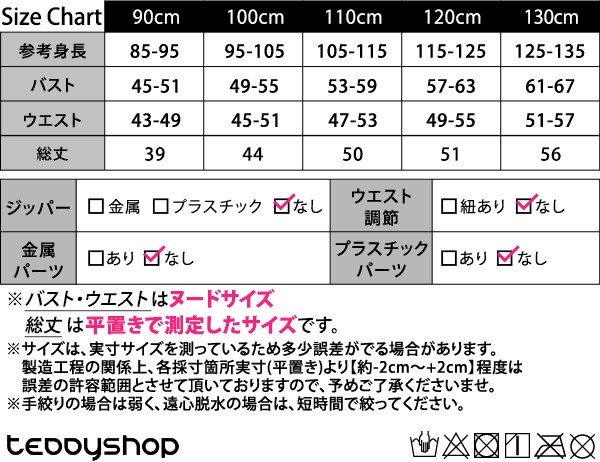 ※バスト・ウエストはヌードサイズ、総丈は平置きで測定したサイズです。