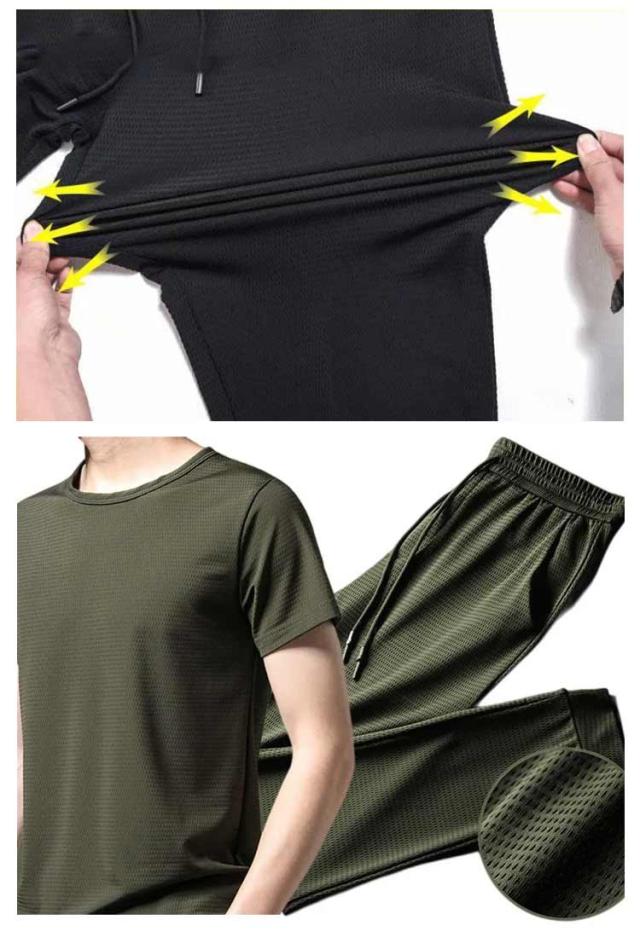 冷感パンツ メンズ 2枚セット アイス シルク ズボン ジョガーパンツ 接触冷感 サマーパンツ メッシュ素材 パンツ ストレッチ 速乾 男性 スポーツパンツ チノパン 涼しい 速乾 伸縮 裾絞り スウェットパンツ 長ズボン ワークパンツ 運動 無地 ゴルフウェア