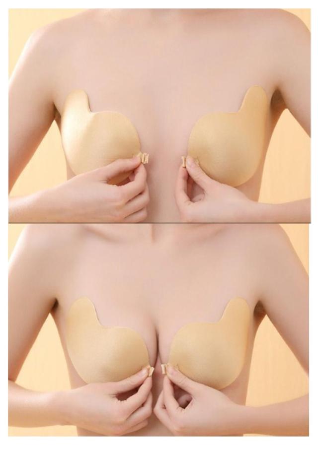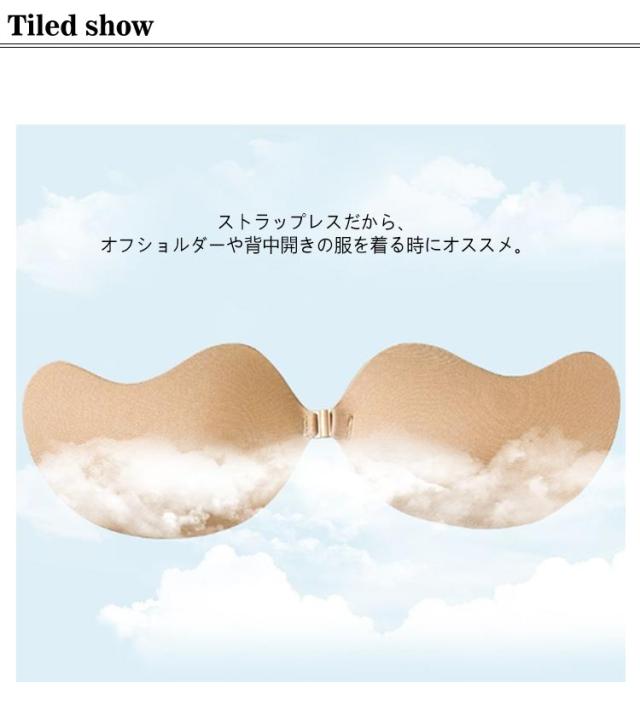 | ドレスや水着など肩紐を見せたくないシーンやブラ線が気になる時にも大活躍してくれるヌーブラ シリコンの粘着面でバストに直接貼り付けるタイプのブラ。 ピタッと貼ってAがCに瞬間変身! 下からグイっと持ち上げながら貼り付けると、バストがキュッと上がってセクシーなバストに♪ 独特の形状が自然で美しい胸の盛り上がりと谷間を作ります 超軽量だから外れにくく、ブラの重さで胸が垂れません。ノーブラ感覚で着けている事を忘れてしまいそう ストラップレスだから、オフショルダーや背中開きの服を着る時にオススメ。 | |