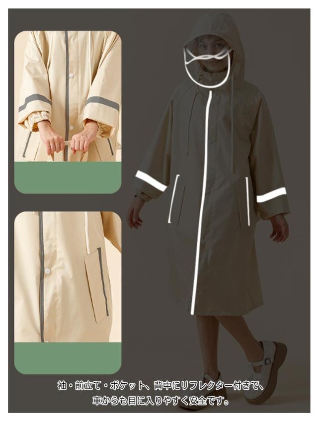 レインコート キッズ ジュニア ランドセル対応 子供 撥水 防水 女の子 男の子 無地 おしゃれ 幼稚園 小学生 カッパ 反射テープ ファスナー 子ども用 子供用 ジュニア レインウェア リュック対応 雨具 収納バッグ付 通学 遠足 旅行 林間学校 レジャー