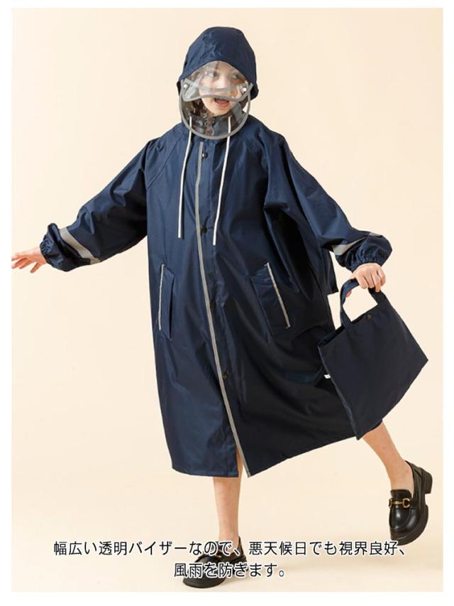 | おしゃれで安全性も・機能性もこだわったこどもレインコート。 袖・前立て・ポケット、背中にリフレクター付きで、車からも目に入りやすく安全です。 ランドセルやリュックを背負ったまま着られる便利なデザイン、使用しない時は、ボタン止めですっきり。 サラサラ感のある上質なレインコート用の生地を使用しているため、体になじみやすく着心地が良いので子供もご機嫌! 表は撥水加工&裏側はPUコーティングでダブルの防水効果。前立てはファスナーとスナップボタンの2重設計で雨の侵入をしっかり防ぎます。 袖口ゴム入りで風や雨の侵入をしっかり防いでくれます。 携帯に便利な収納ポーチ付きで、いつでも手軽に持ち歩けます。 幅広い透明バイザーなので、悪天候日でも視界良好、風雨を防ぎます。 しっかりした厚手丈夫な生地、年間通し使用可能です。 | |