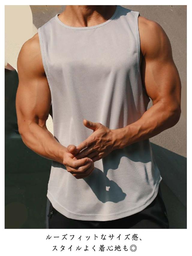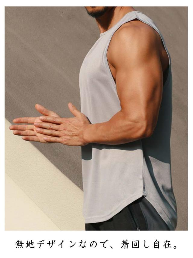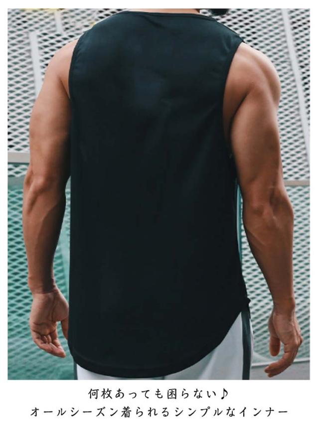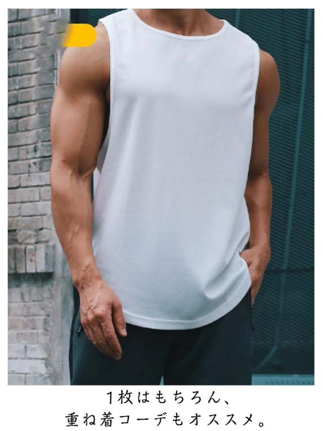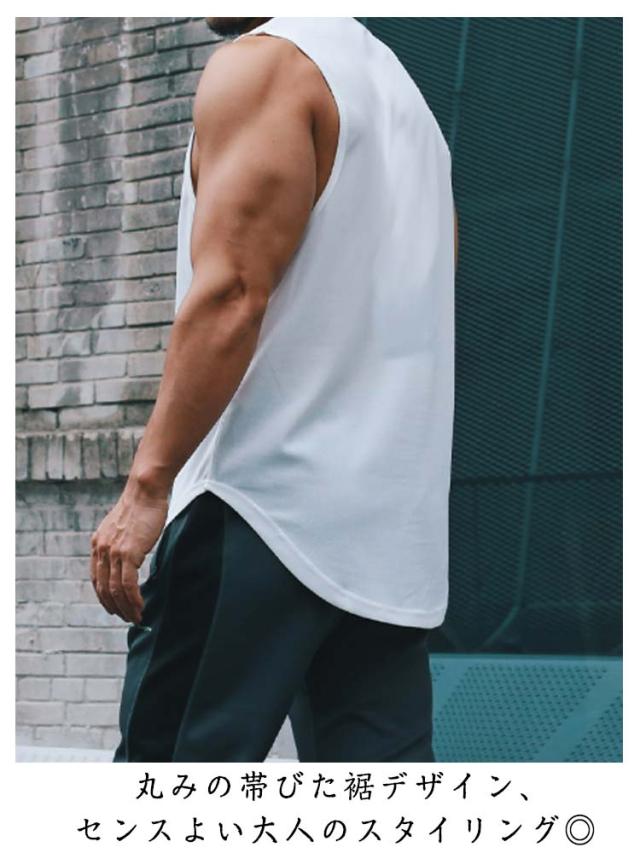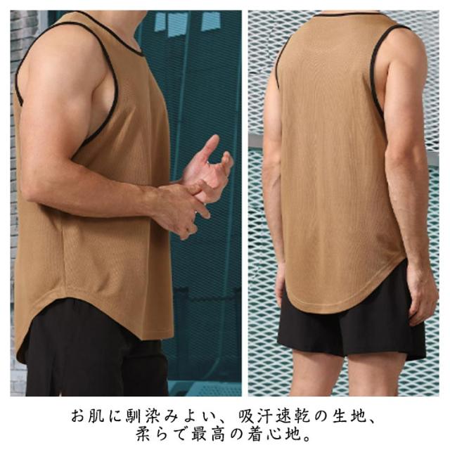 タンクトップ ロング丈 メンズ インナー ラウンド裾 ロングタンクトップ ゆったり スポーツウエア スポーツインナー レイヤード トップス 無地 メッシュ 通気性 夏服 夏 春夏 メンズファッション