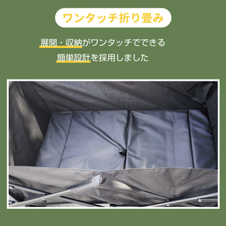 収束型のキャリーワゴンで、簡単に折りたたで収納できます。フレームを広げるだけであっというまに組み立てもできます。