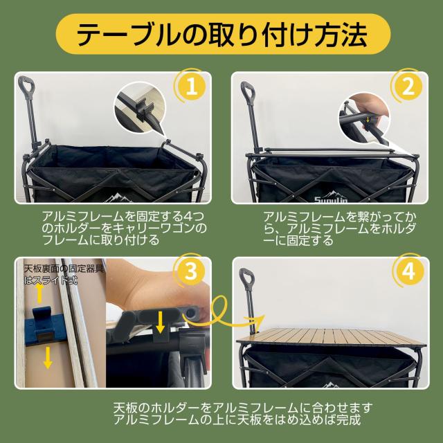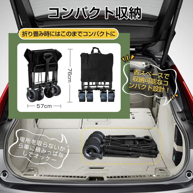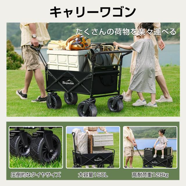 【クーポンで5%OFF★ポイント10%還元】Supulin キャリーワゴン キャリーカート アウトドアワゴン 折りたたみ 4輪 頑丈 耐荷重128kg 大容量 ワイドタイヤ 軽量 コンパクト アウトドアキャリー アウトドア キャンプ 大型