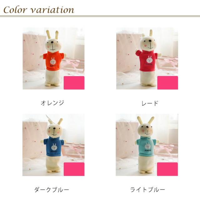 | 全8色!ウサギをかたどった、ぬいぐるみのように可愛らしいフィギュアポーチ。気持ちの良い肌触りに癒される! 動物の背中のファスナー内側が収納スペースになったユニークなつくり。ペンケースや、メイクポーチ。小物入れとして様々な用途にお使いいただけます。 ウサギやぬいぐるみが好きな方、お子さまから大人まで、様々な方にお使いいただける優しいデザインが魅力! キュートなウサギをカラー豊富にラインナップ。 | |