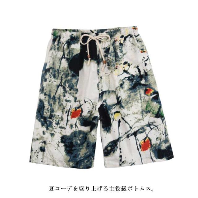 花柄 ショートパンツ ハーフパンツ メンズ リネン パンツ 5分丈 パンツ 綿麻 パンツ 花柄パンツ 綿麻 リネン リネンパンツ リネン ショーツ ショーパン 綿麻ショーツ 海パン サーフパンツ 海水パンツ ルームウェア