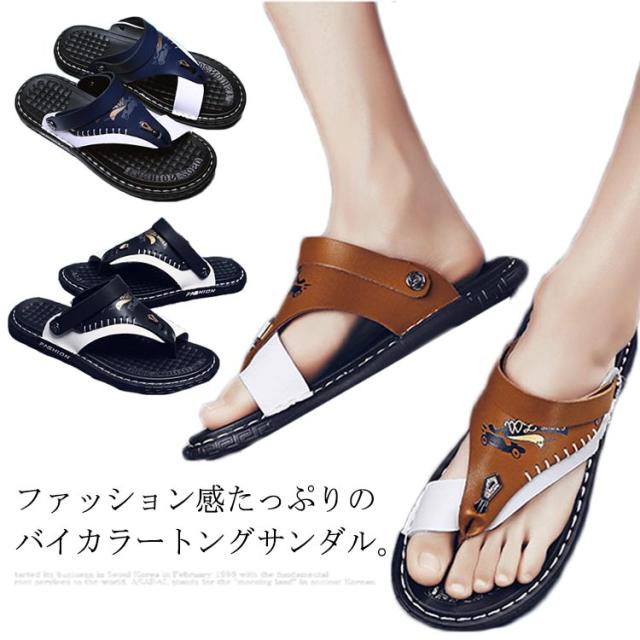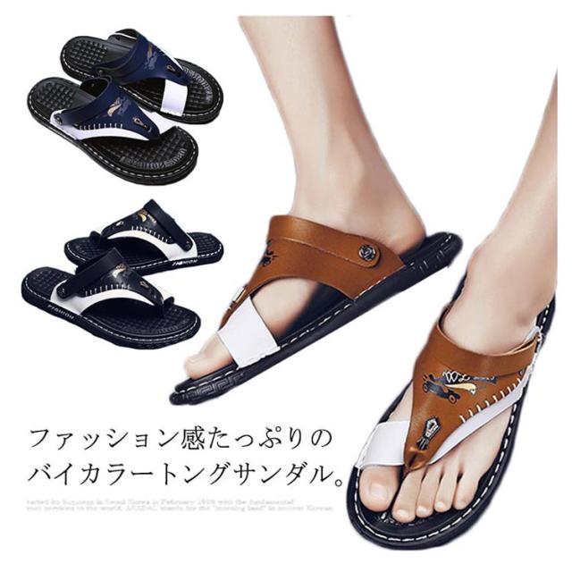 トングサンダル フェイクレザー サンダル メンズ おしゃれ 2way コンフォートサンダル 軽量 ビーチサンダルサンダル アウトドア スポーツサンダル 父の日 普段履き