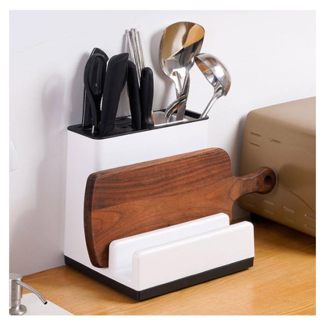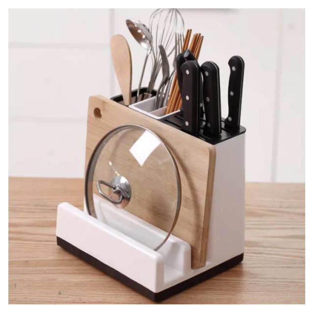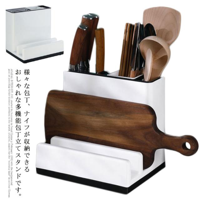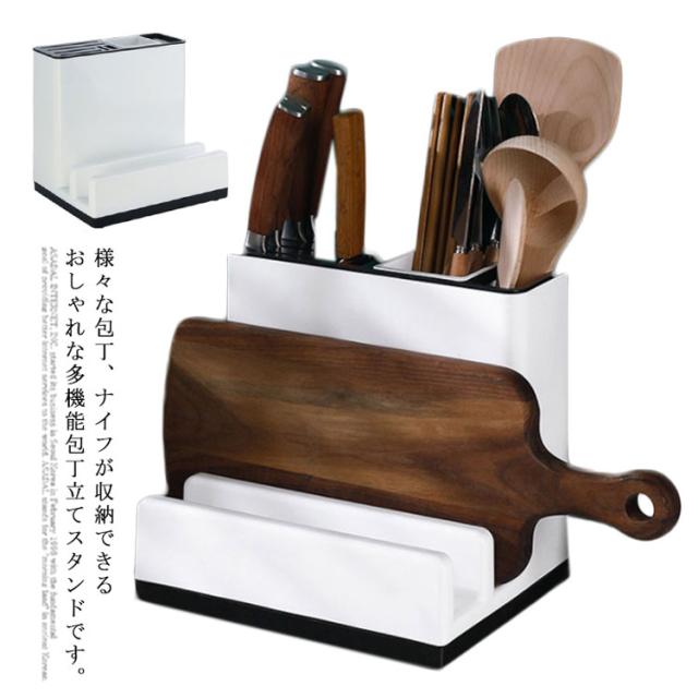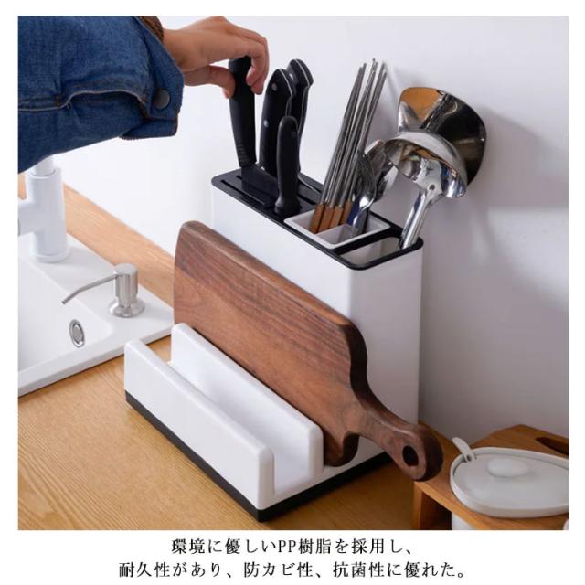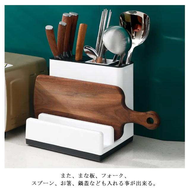 包丁立て まな板スタンド 包丁スタンド 包丁差し一体式 多機能 包丁ケース ナイフ/フォーク/スプーン/オタマ/お箸立て 水受け皿付き キッチンラック 丸洗い キッチン収納 台所用品 省スペース
