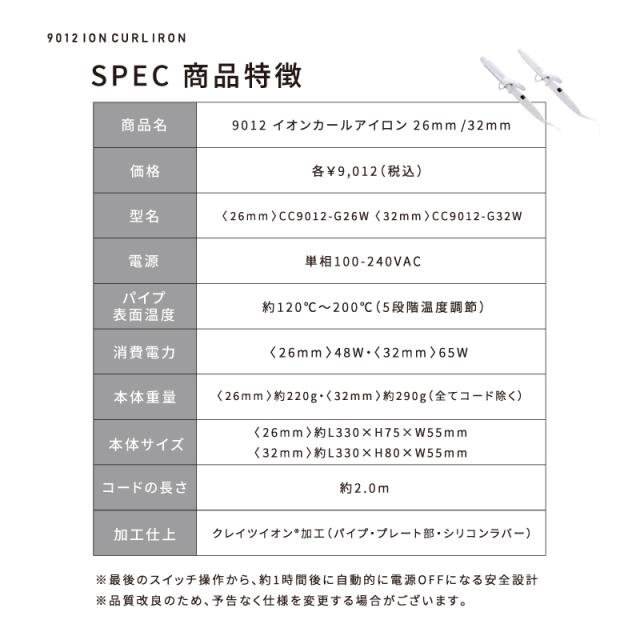 9012イオンカールアイロン 26mm / 32mm / 38mm