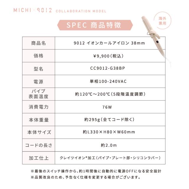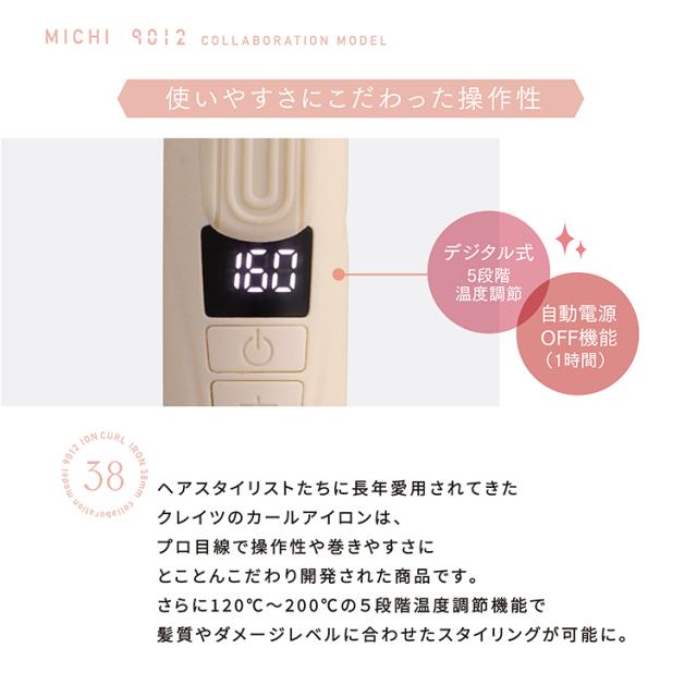 【メーカ公認正規販売】 メーカー保証付き クレイツ 9012イオンカールアイロン 38mm ミチ プロデュース クレイツ コテ 9012×MICHI カールアイロン ヘアアイロン 26mm CC9012-G26W / 32mm CC9012-G32W 海外兼用 巻き髪 CREATEs クレイツイオン MICHI