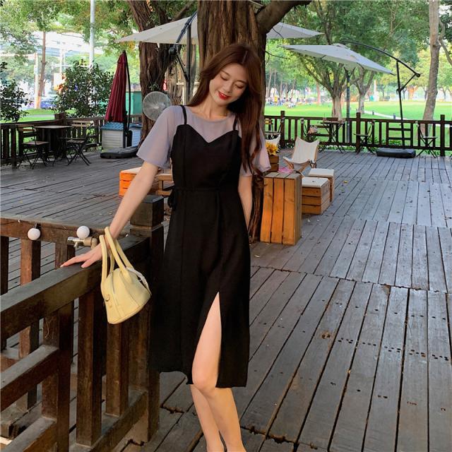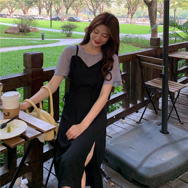 スリット重ね着キャミワンピマキシワンピース大きいサイズ夏秋レディース