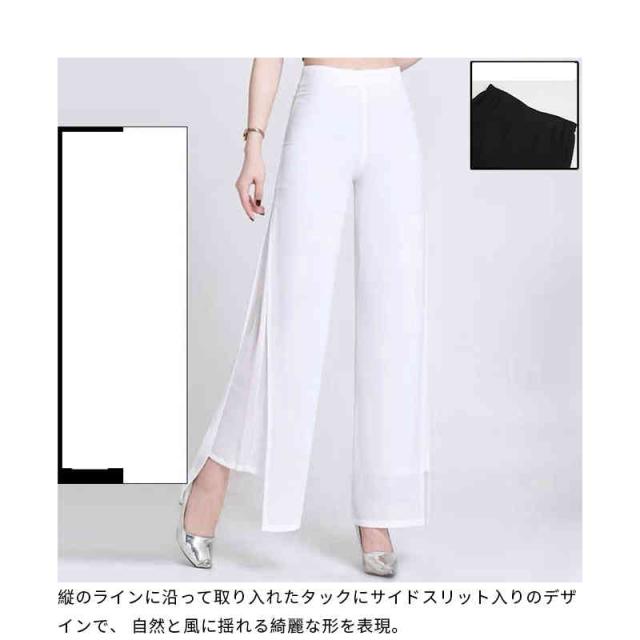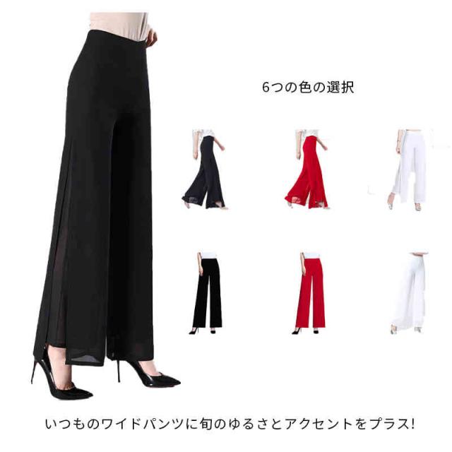 2タイプ 3色 シフォン シフォンワイドパンツ スリットワイドパンツオフィス ハイウエスト ウエストゴム 美脚効果 オフィス カジュアル きれいめ 通勤