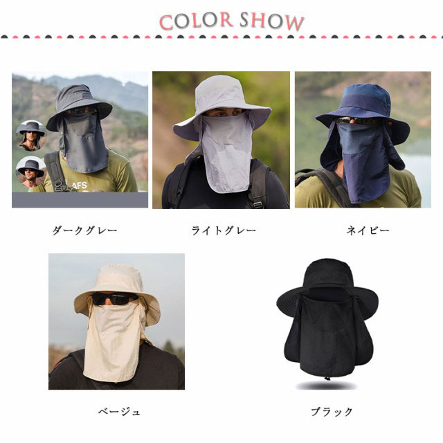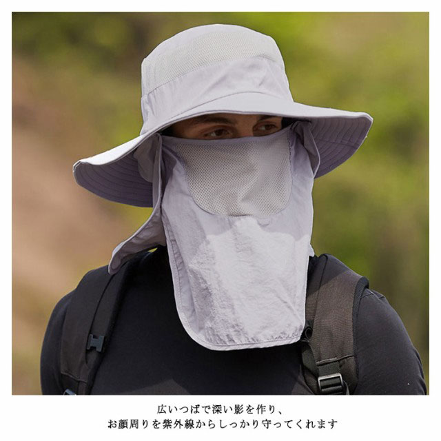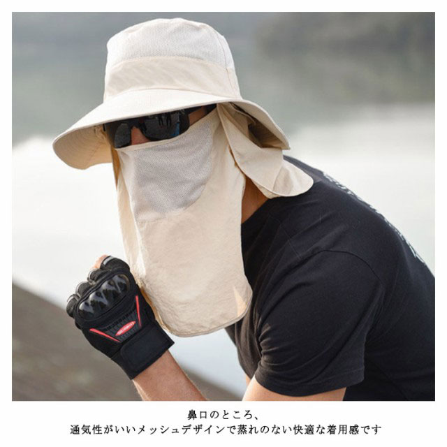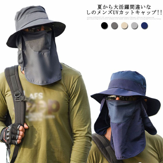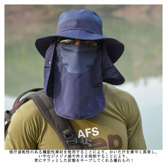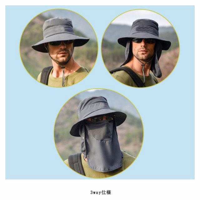 3way 農作業 帽子 UVカット メンズ キャップ サファリーハット 送料無料 日よけ帽子 夏 紫外線対策 折りたたみ 360度UVカット 吸汗速乾 フェイスカバー アウトドア 釣り 運転 海