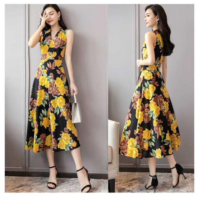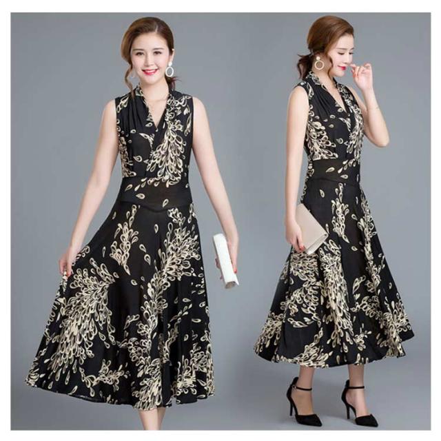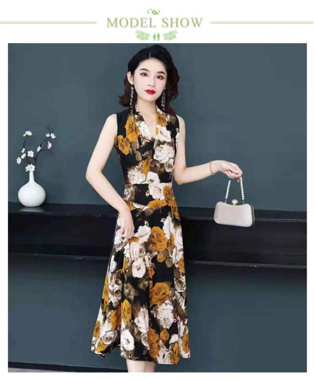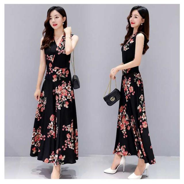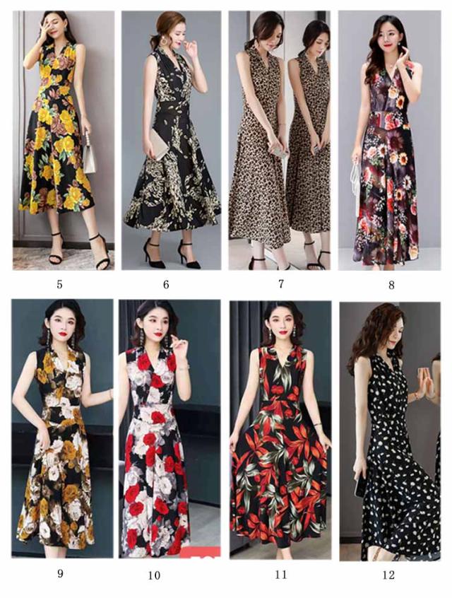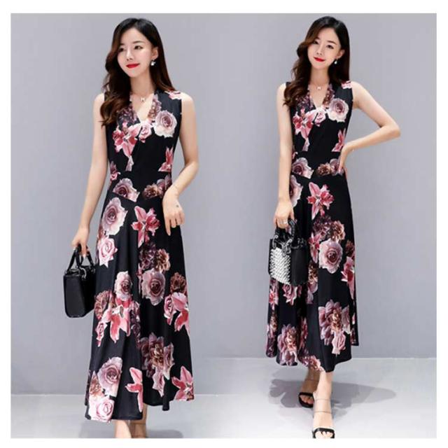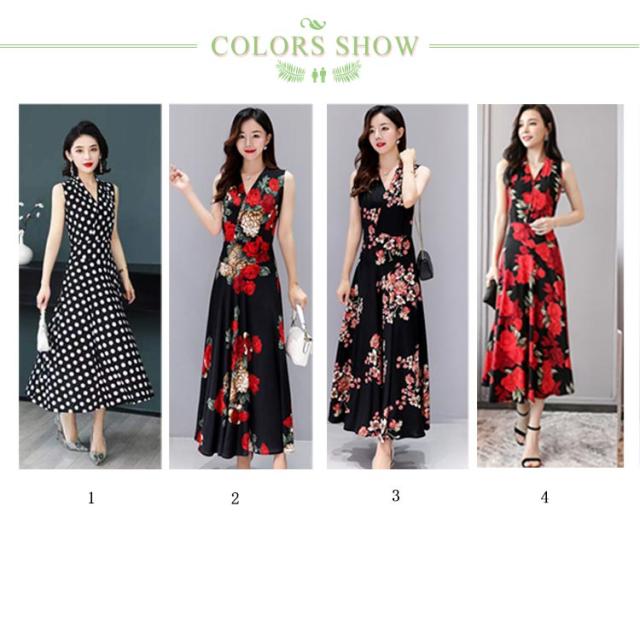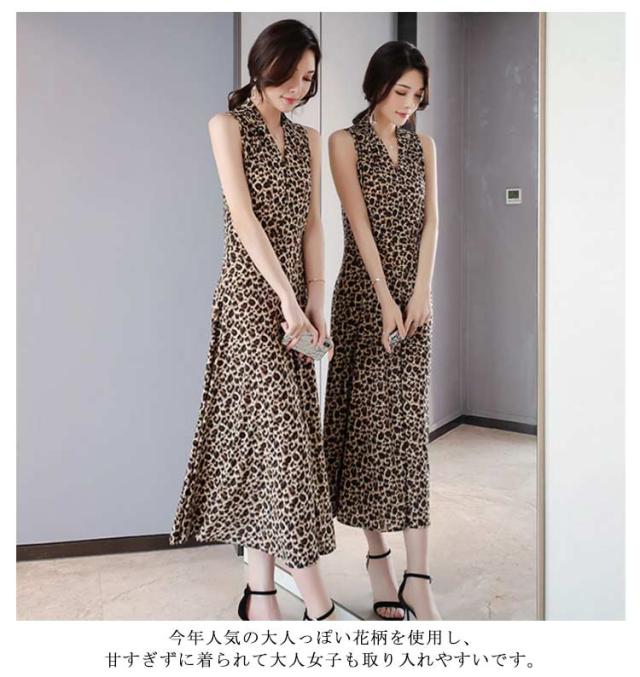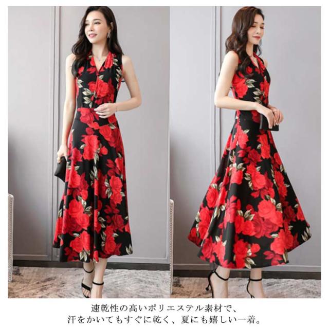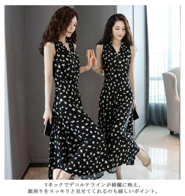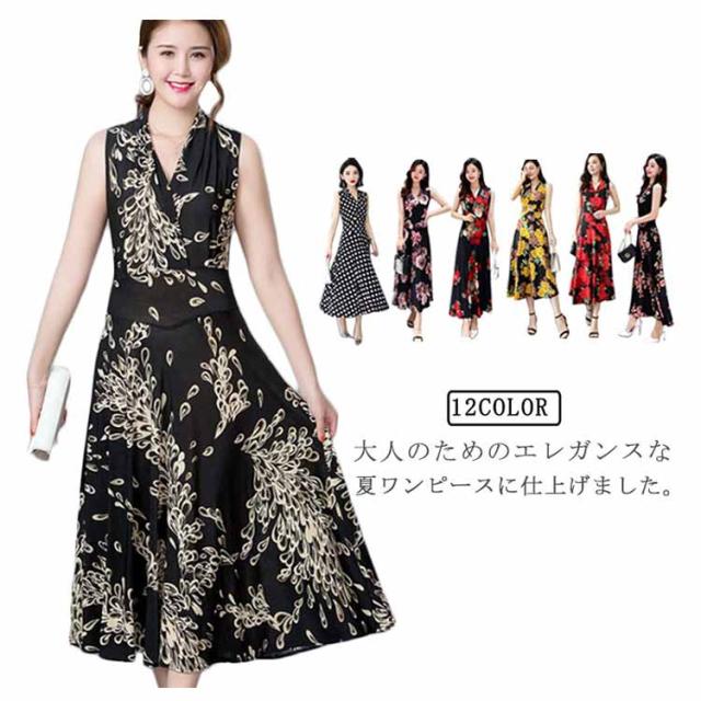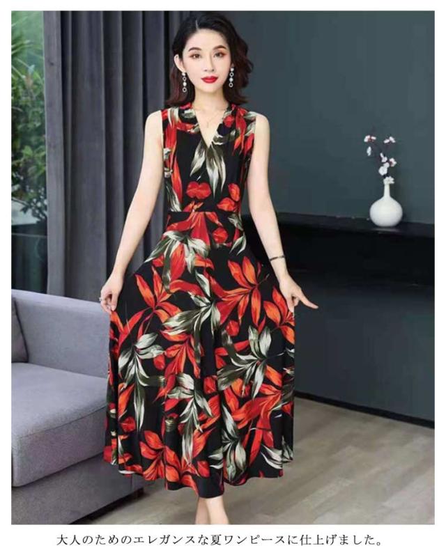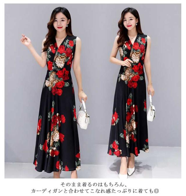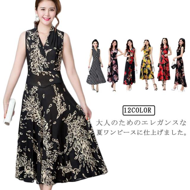 ワンピース 花柄 総柄 Vネック ノースリーブ フレア Aライン タイト ひょう柄 水玉柄 おしゃれ 大人 韓国風 ひざ丈 膝下 フェミニン 小花柄 20代 30代 40代 50代 L/LL/XL/2L/3L/4L 大きいサイズ 【送料無料】