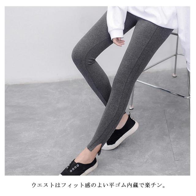 裾スリット入り レギンス スパッツ 送料無料 レディース 無地 ウェストゴム 伸縮性 大きいサイズ リブ レギンス パンツ 着痩せ 美脚 ルームウェア スポーツウェア 春夏 秋冬