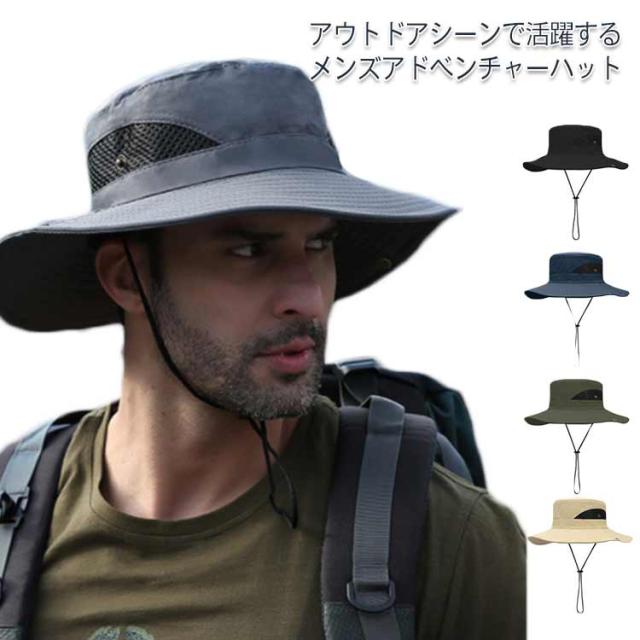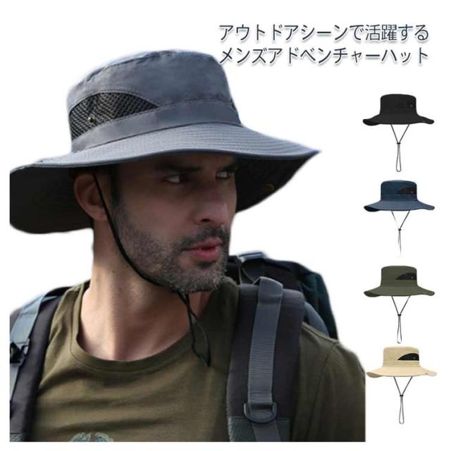 【送料無料】アドベンチャーハット メンズ サファリハット ツバ広ハット 帽子 ハット 撥水 男女兼用 ユニセックス あご紐 紐付き 日差し対策 紫外線対策 ウォーキング 通気性 メッシュ サイクリング アウトドア 釣り 登山 無地 シンプル 父の日 ギフト