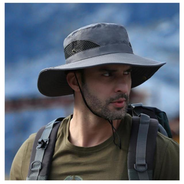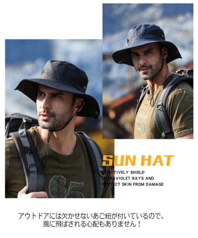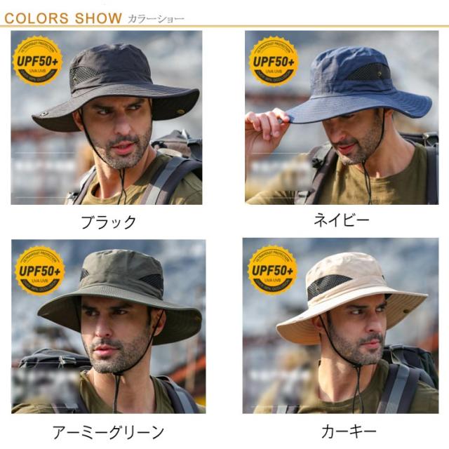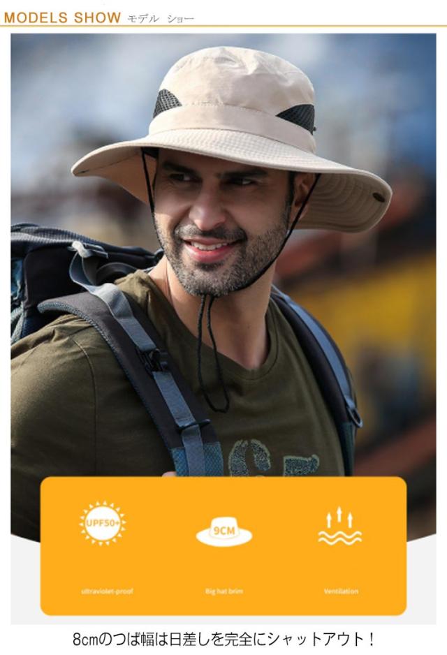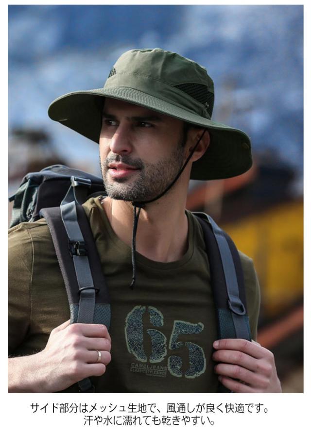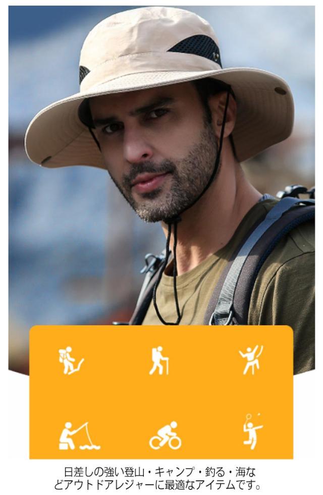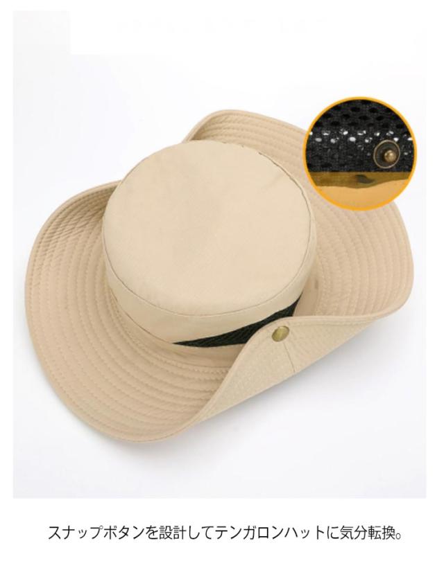 | アウトドアシーンで活躍するメンズアドベンチャーハット 8cmのつば幅は日差しを完全にシャットアウト! サイド部分はメッシュ生地で、風通しが良く快適です。汗や水に濡れても乾きやすい。 スナップボタンを設計してテンガロンハットに気分転換。 突然の雨も心配ないよう、水滴を弾く撥水素材を使用しております。 アウトドアには欠かせないあご紐が付いているので、風に飛ばされる心配もありません! 日差しの強い登山・キャンプ・釣る・海などアウトドアレジャーに最適なアイテムです。 | |