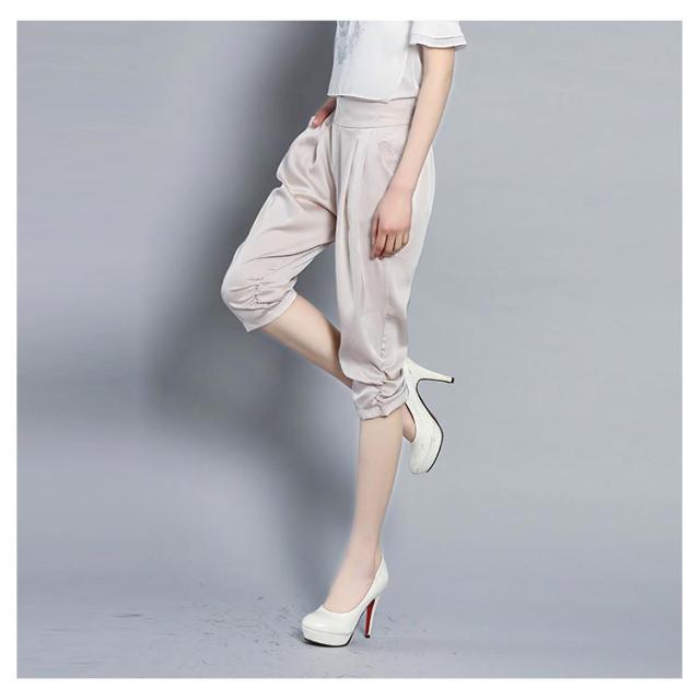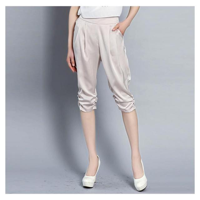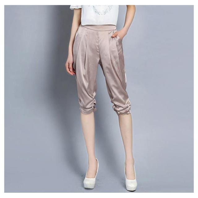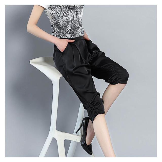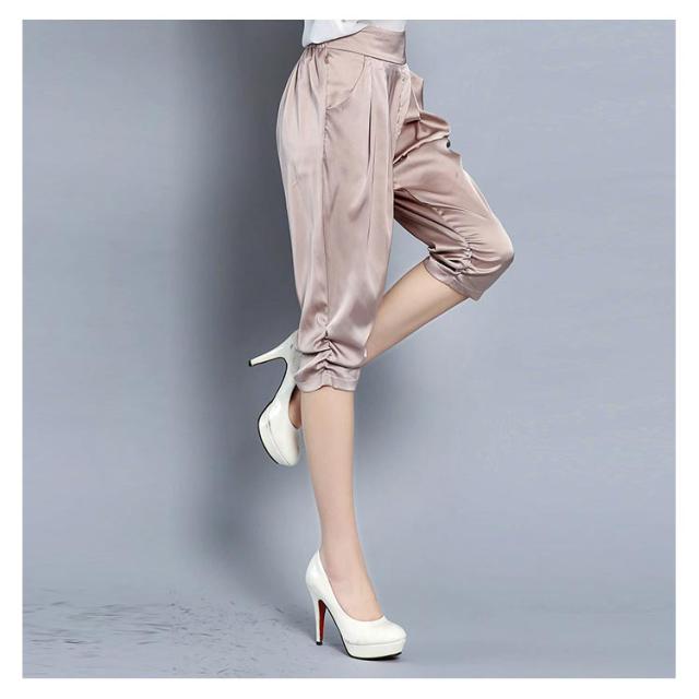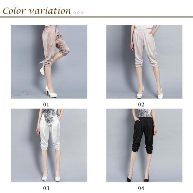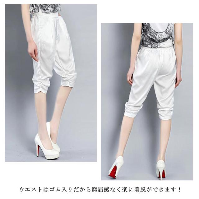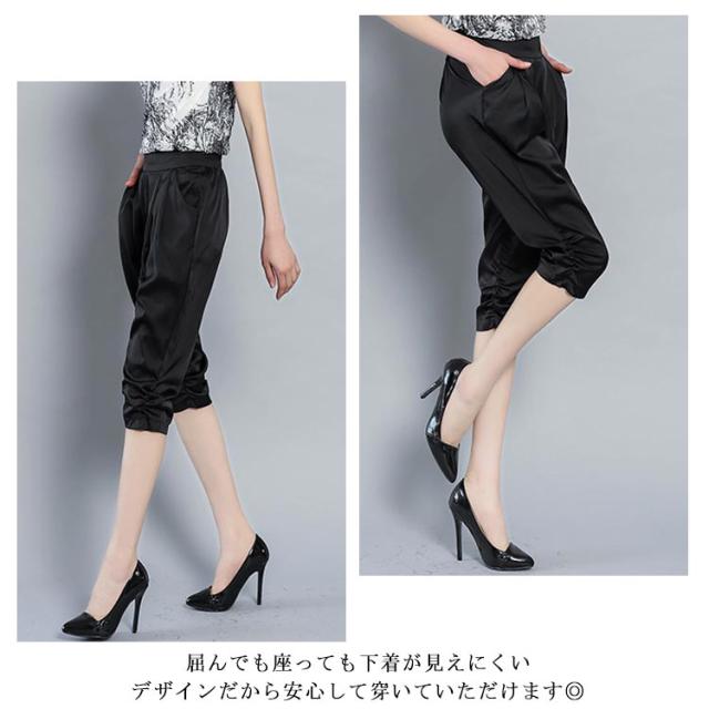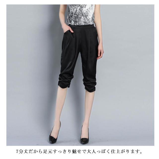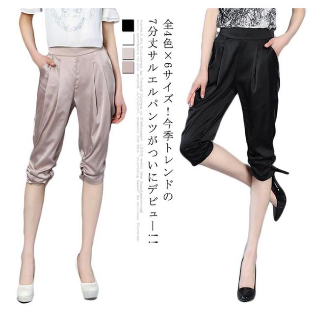 全4色×6サイズ!サテン素材 サルエルパンツ レディース 7分丈パンツ クロップドパンツ サテン シルク ストレッチパンツ 楽チン シンプル 無地 春夏 ボトムス 大きサイズ