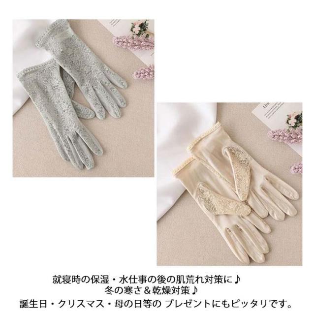 シルク手袋 レディース おやすみ手袋 ハンドケア 花柄 レース シルクグローブ ナイトグローブ 薄手 紫外線 UVカット 手荒れ 就寝時 保湿 日焼け止め ハンドウォーマー 乾燥対策 おやすみ ナイト手袋 てぶくろ オールシーズン エレガント 上品 ギフト プレゼント 送料無料