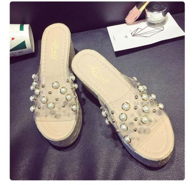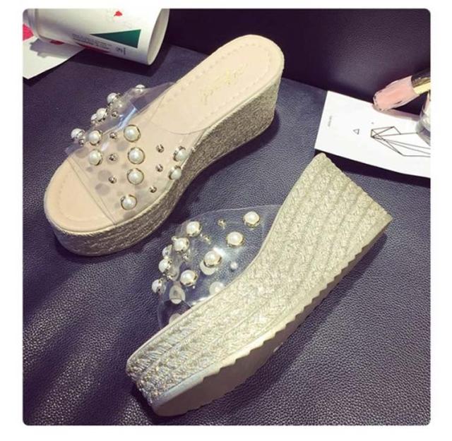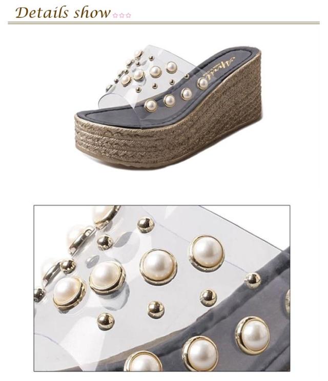 フェイク パール サンダル クリアサンダル レディース 厚底 スリッパ サンダル 透明サンダル 7.5cmヒール クリア ベルト サンダル ウェッジソール サンダル 厚底サンダル サンダル 美脚 サンダル コンフォートサンダル ストラップ サンダル 春夏 歩きやすい