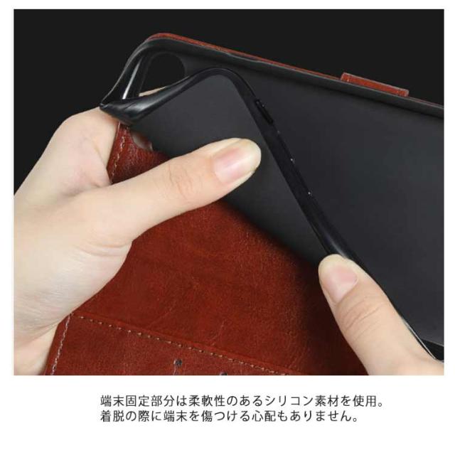 | 高級感あふれるPUレザーを使用した手帳型のiPhoneケース。 水に強く、傷が付きにくい素材です。 フリップ部分にマグネットが内蔵されているので、ベルトがなくてもフタが閉まります。 ベルトがないので片手でラクに開閉でき、カバンやポケットに入れても引っかかりません。 スピーカーホールが付いているので、フリップを閉じたままでも通話が可能です。 標準サイズのカードが入るカードポケットと、折りたたんだ紙幣や領収書などを収納できる便利なマルチ収納ポケット付き。 端末固定部分は柔軟性のあるシリコン素材を使用。着脱の際に端末を傷つける心配もありません。 動画視聴、テレビ電話などの際に便利なスタンド付き。 角度調節も可能です。 カメラホールのフチは、一点一点手作業でコバ塗りをし、 綺麗にコーティングを施しています。 | |