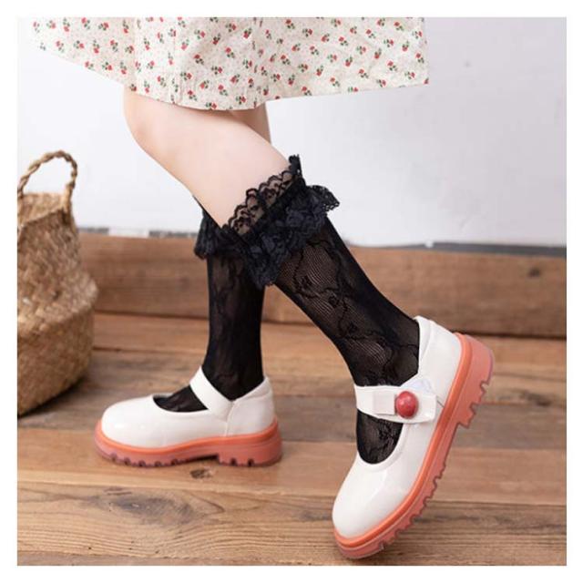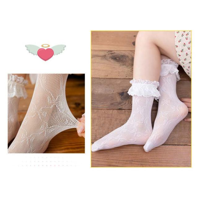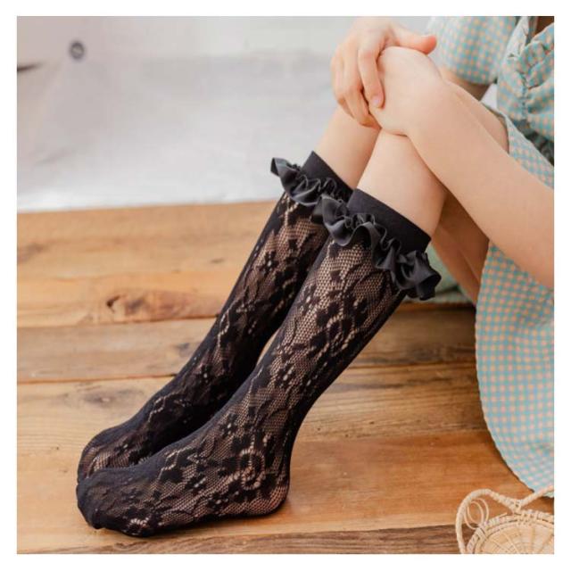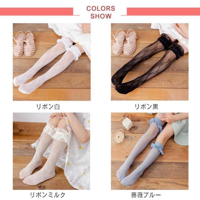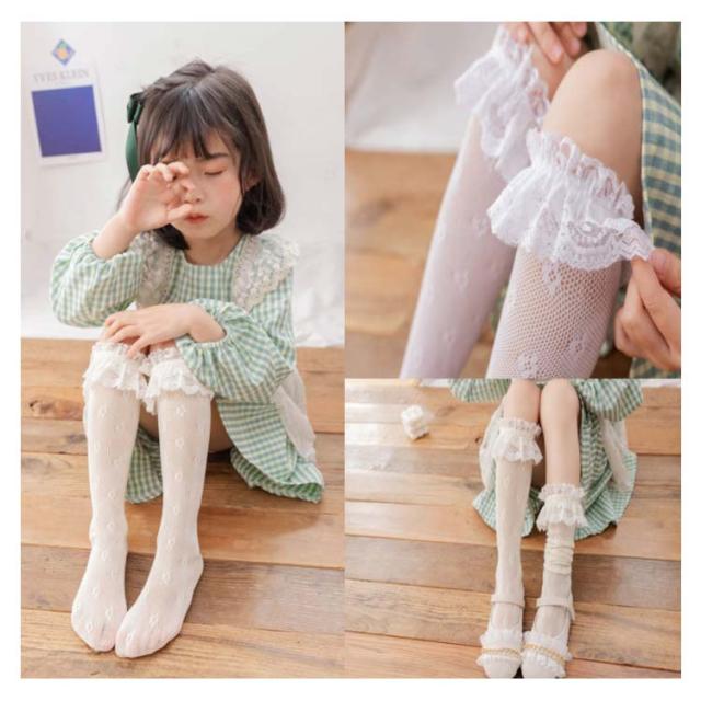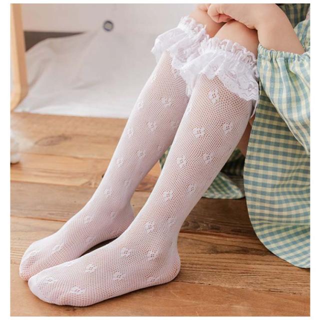 キッズ 靴下 レース ハイソックス フリルソックス 春 夏 秋 薄手 涼しい ベビー 女の子 かわいい おしゃれ ソックス フリル メッシュ ハイソックス シンプル カジュアル ナチュラル 新品 人気 新作 送料無料 無地 姫系