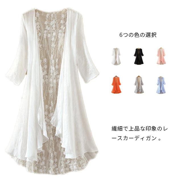 透ける花柄が艶やか レース カーディガン レディース 夏 ボレロ トップス ロングカーディガン サマーカーディガン おしゃれ 大人 透け感 涼しい 涼感 ロング UVカット 前開き 羽織り 紫外線対策 冷房対策
