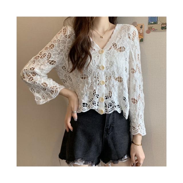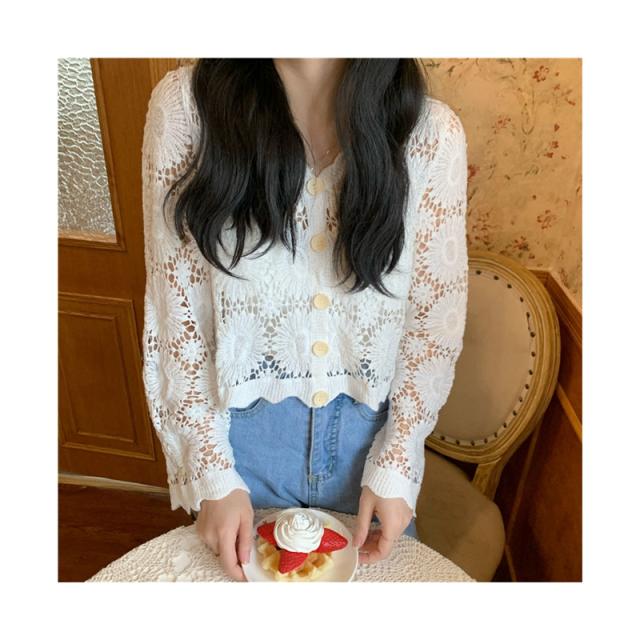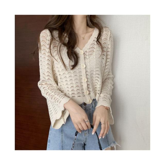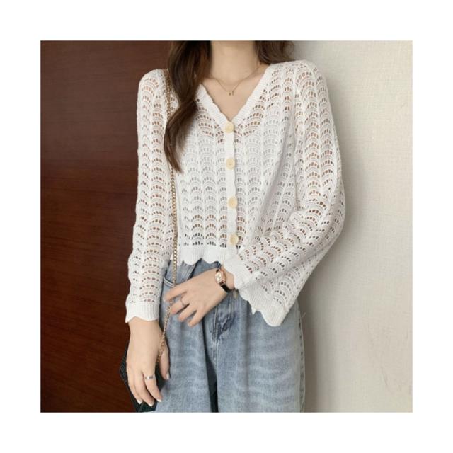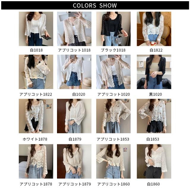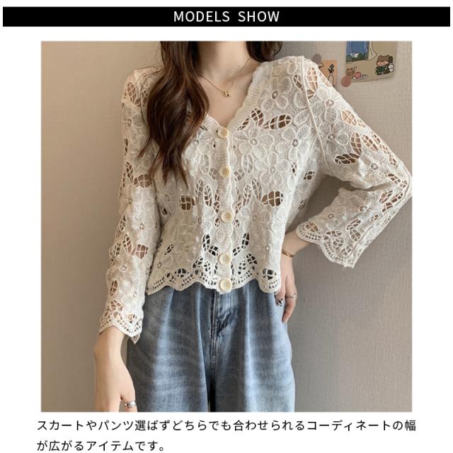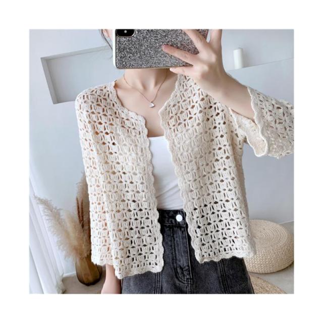 カーディガン ショート丈 透かし編み 長袖 サマーカーディガン レディース レース スカラップ ボレロ 羽織り 冷房対策 トップス コーデ 春夏 薄地 シンプル 重ね着 レイヤード 夏休み カジュアル 大人可愛