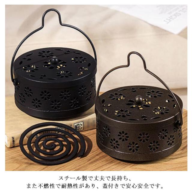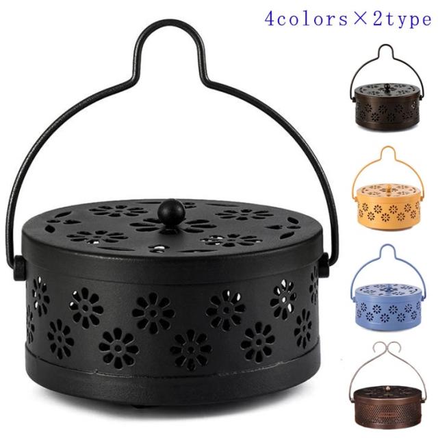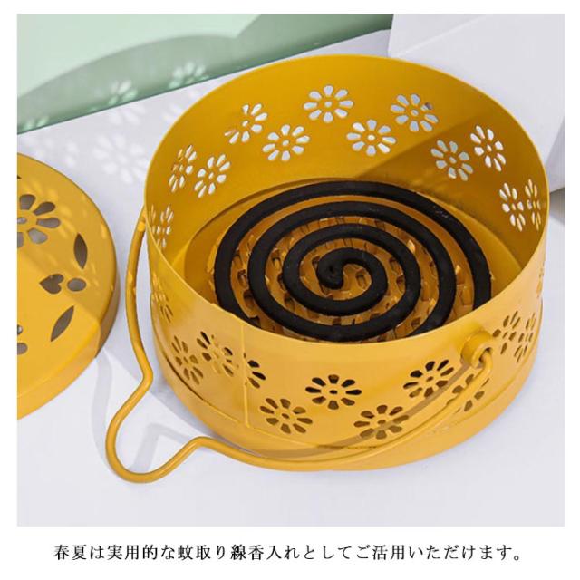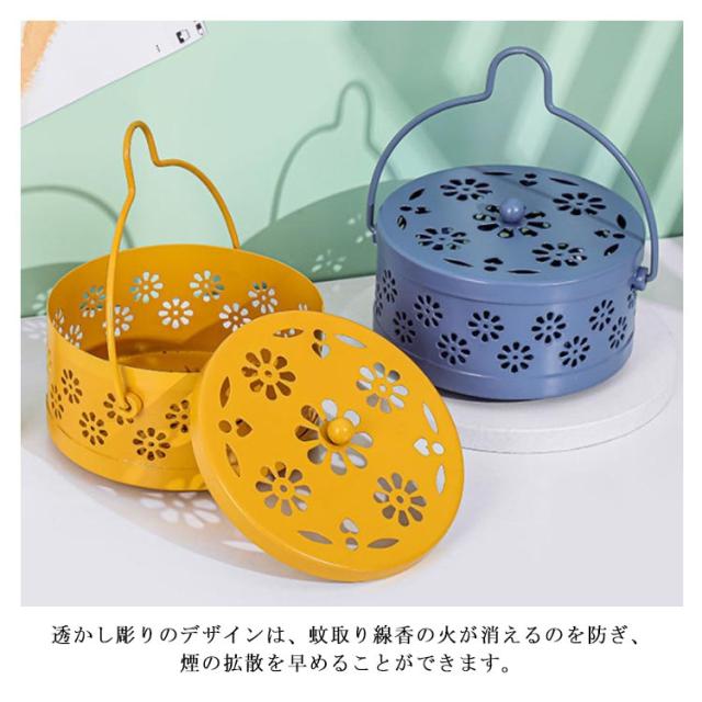 蚊取り線香入れ 吊り下げ 蚊遣り 蚊取り線香ホルダー スチール製 青 黄 銅 黒 スタンド かやり 蚊やり 蚊取り線香 ホルダー 蚊取り線香立て 蓋付き 蚊取り器 虫除け