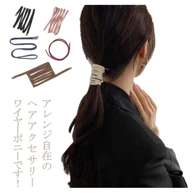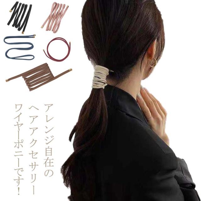 ワイヤーポニー ヘアアクセサリー ヘアアレンジ コード カチューシャ ヘアゴム ヘアワイヤー アレンジ自在 シャイニー ワイヤー入り 紐 細 リボン シンプル カジュアル