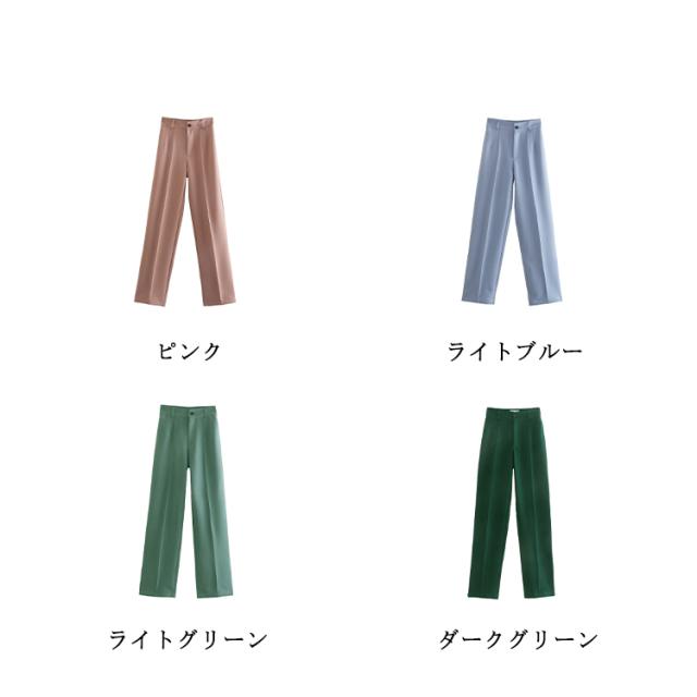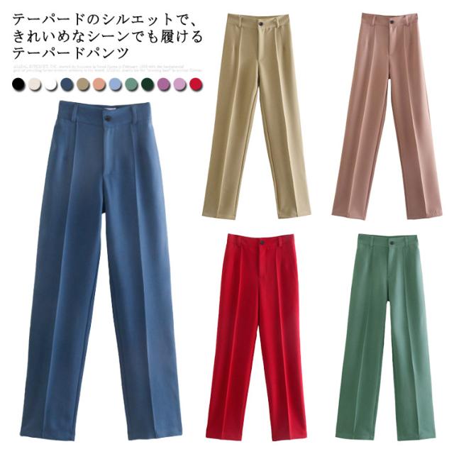 テーパードパンツ レディース ワイドパンツ ロングパンツ センタープレス カラーパンツ イージーパンツ ボトムス ズボン ハイウエスト フォーマル 低身長 高身長 春 夏 秋 冬 黒 ネイビー 大きいサイズ