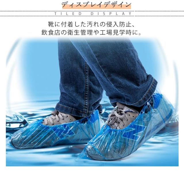 | 防水タイプの使い捨てシューズカバー100枚入 靴に付着した汚れの侵入防止、飲食店の衛生管理や工場見学時に。 防水タイプのシューズカバーですので水の浸入を防ぎます。 工場見学や、現場作業、工場内の衛生管理など、幅広い用途におすすめ! | |