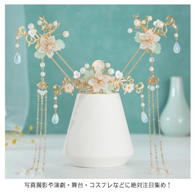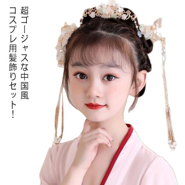 髪飾り 3点セット 中華 女の子 キッズ チャイナ風 子供 簪 ヘアアクセサリー 中国風 漢服 フリンジかんざし コスプレ 舞台ステージ道具 可愛い 記念写真 古風 コスチューム 撮影 髪飾り レディース 大人 送料無料