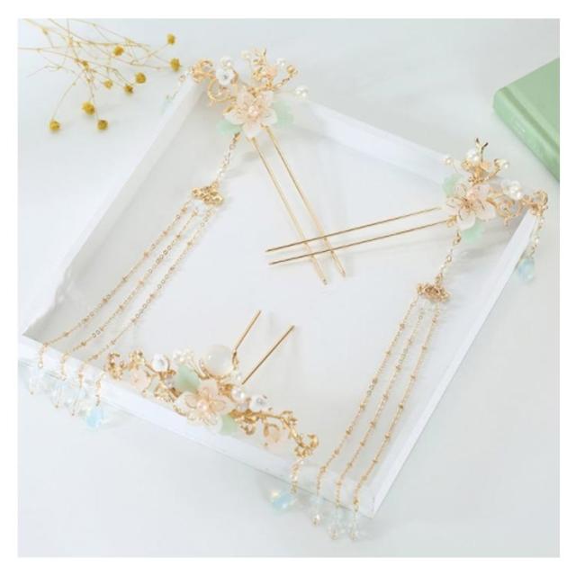 | 超ゴージャスな中国風コスプレ用髪飾りセット! 下に垂れ下がるチェーンが軽く揺れてキラキラで輝く! 十分にオシャレで上品な印象を与えていくことができます。 写真撮影や演劇・舞台・コスプレなどに絶対注目集め! | |