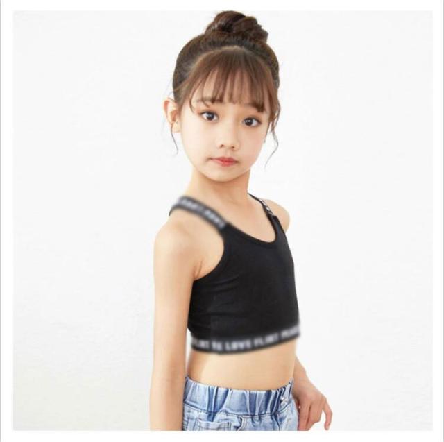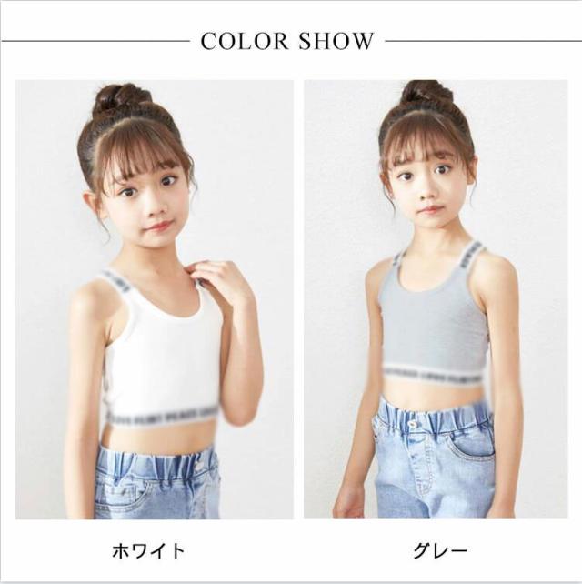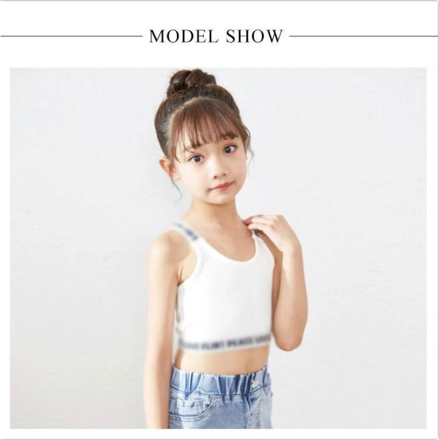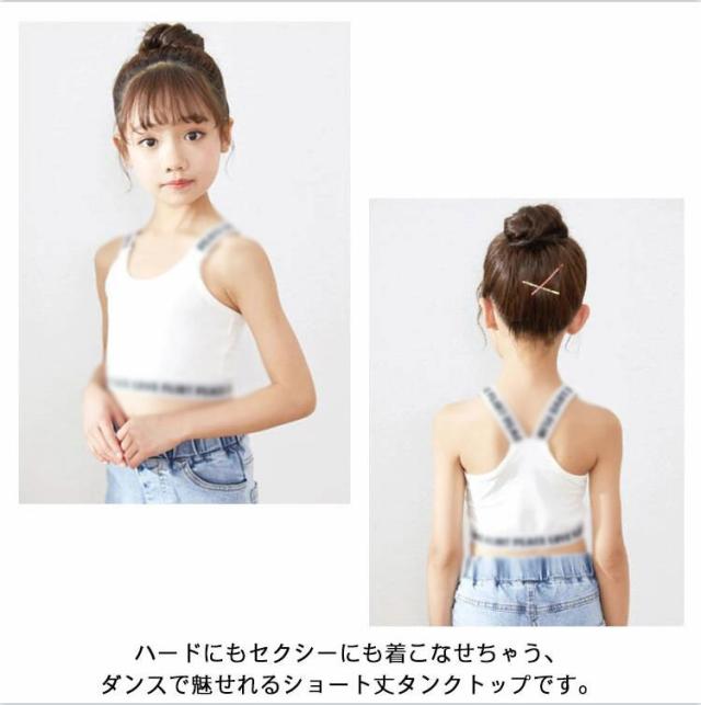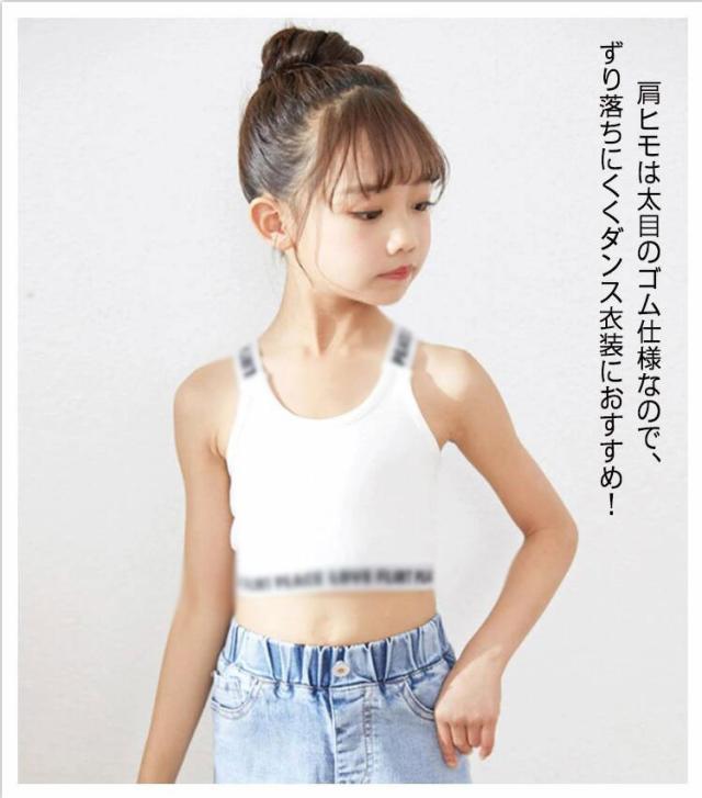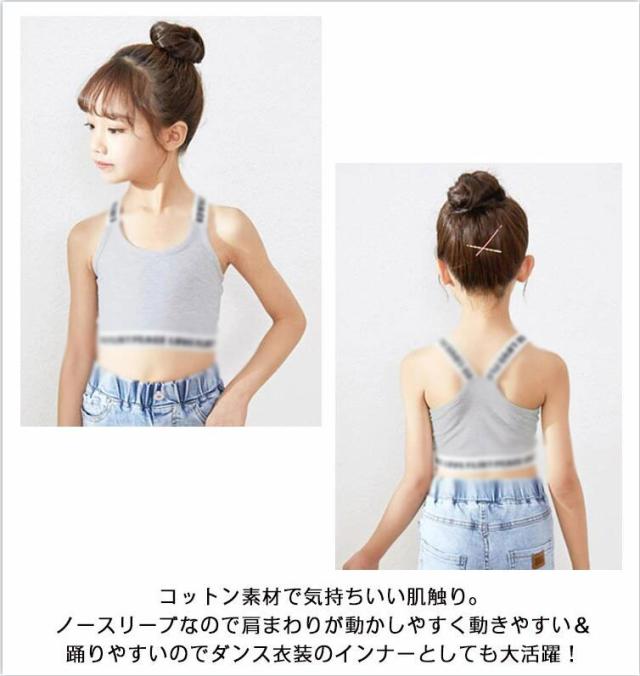 ダンスチューブトップ タンクトップ チューブトップ 送料無料 スポーツブラ ブラトップ ショート丈 パットなし ショート丈 女の子 子供服 キッズ ロゴ 肩ひもロゴ コットン 無地 ブラック/ホワイト/グレー/ピンク 110cm 120cm 140cm 150cm 160cm ガールズ