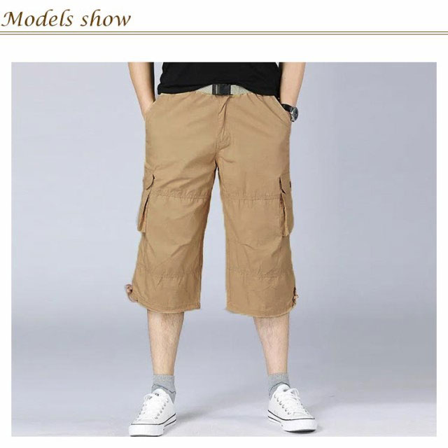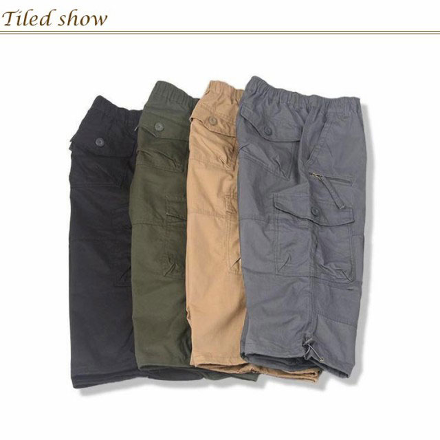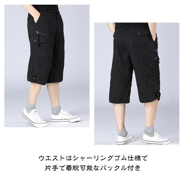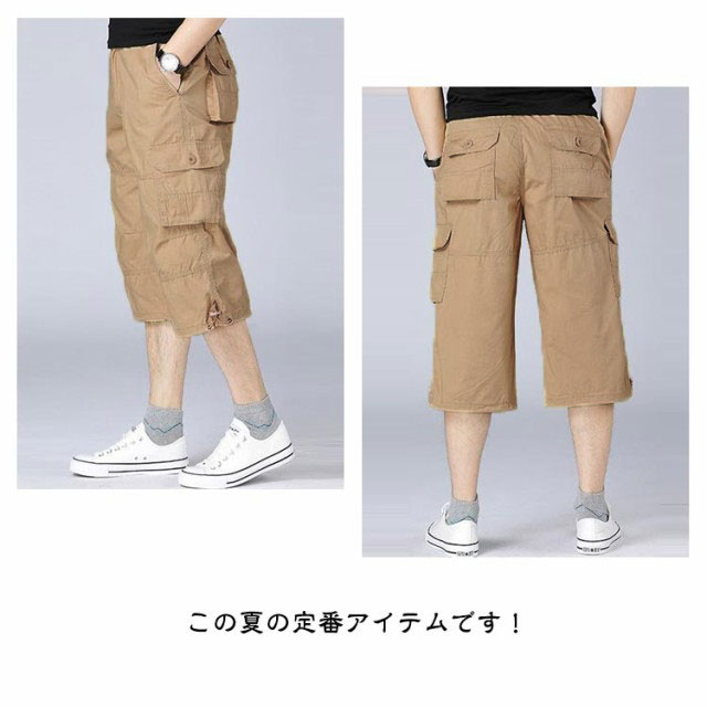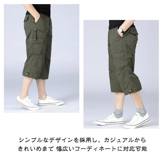 7分丈 カーゴパンツ メンズ ゆったり 送料無料 クロップドハーフパンツ ひざ下 綿 無地 ハーフパンツ 大きいサイズ カーゴ イージーパンツ 男性用 スポーツ 運動 リゾート カジュアル